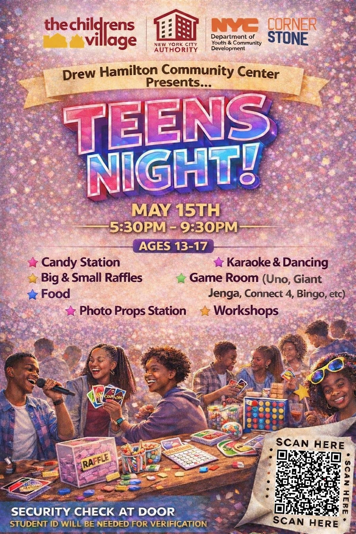 Get ready for an awesome Teens Night that's all about fun, friends, and good vibes! Join us in person for a night packed with cool activities, great tunes, and a chance to hang out with your crew. Whether you're into games, dancing, or just chilling, this night is made just for you. Don't miss out on the best way to kick back and make memories. See you there!