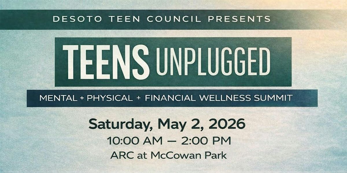 Join the DeSoto Teen Council for Teens Unplugged, a youth wellness summit designed to help teens recharge and learn tools for a healthier lifestyle.
