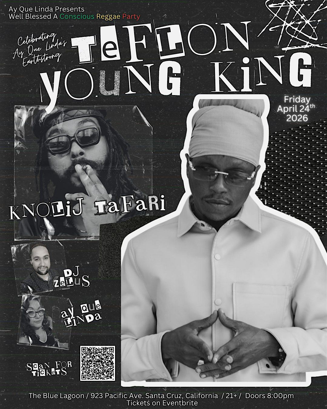 Well Blessed... A Conscious Reggae Party celebrating Ay Que Linda's Earthstrong with an epic night of Reggae & Dancehall Music straight from Jamaica, with Teflon Young King and Knolij Tafari bringing the vibes live! Spinning the freshest Reggae & Dancehall DJ Zelus will keep the party going all night long. Come through and feel the vibes!