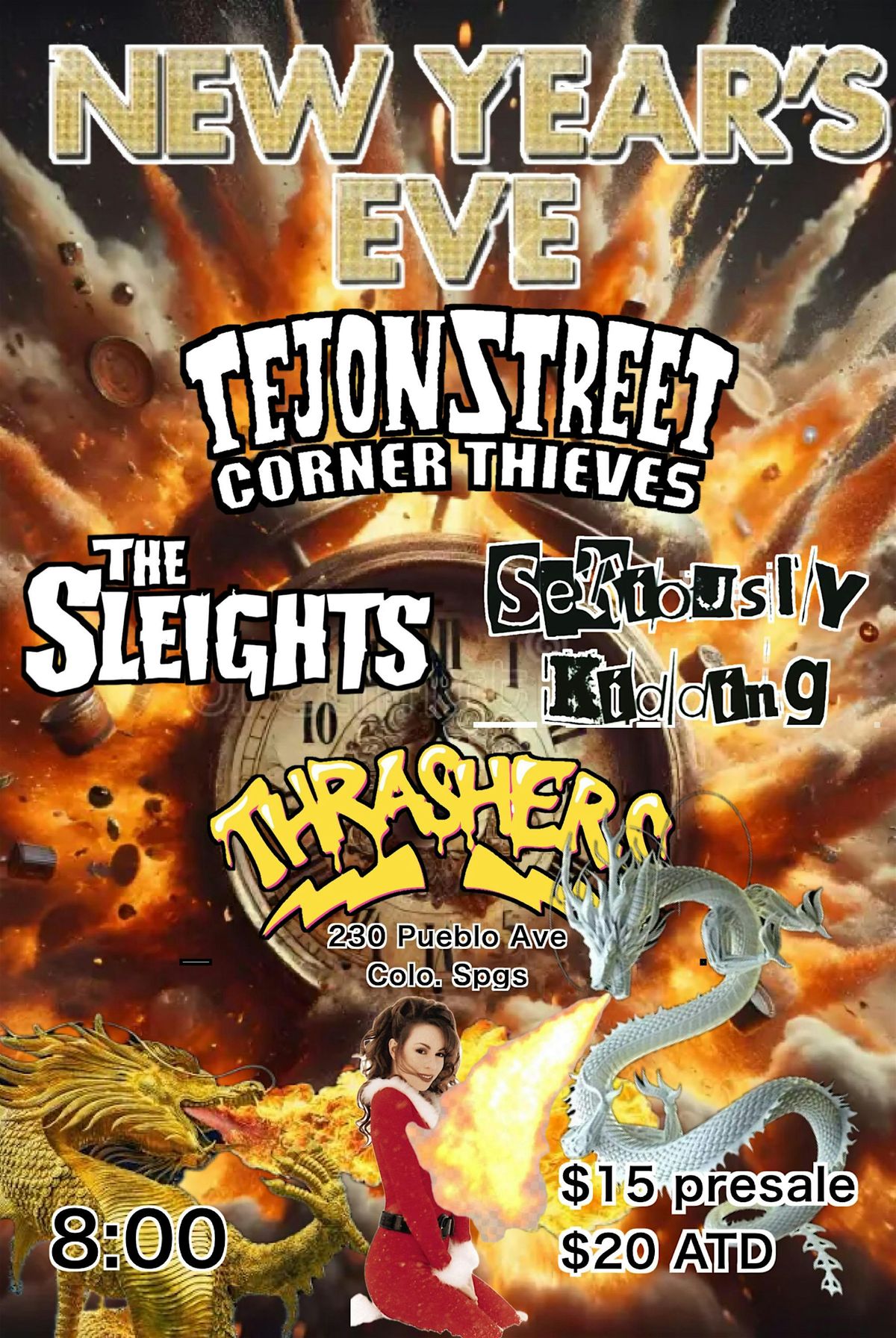 Ring in the new year with TSCT, The Sleight, and Seriously Kidding at your favorite downtown dive, Thrashers!