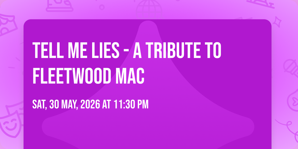 📍 Location: 28.370895, -81.52175🌟 Step into a world of wonder at Tell Me Lies - A Tribute to Fleetwood Mac, where extraordinary moments await! 🏛️ Located at House of Blues - Orlando in dynamic Orlando, FL, this event will become the talk of the town. 📅 Join us on May 30th, 2026 at 11:30 PM for a celebration that defies the ordinary. ✨ This curated experience brings together the best of entertainment, culture, and community spirit. Every detail has been thoughtfully planned to ensure an unforgettable experience for all our guests. 🎯 Take advantage of this opportunity to be part of something special. 🎊 Early registration is recommended as space is limited!