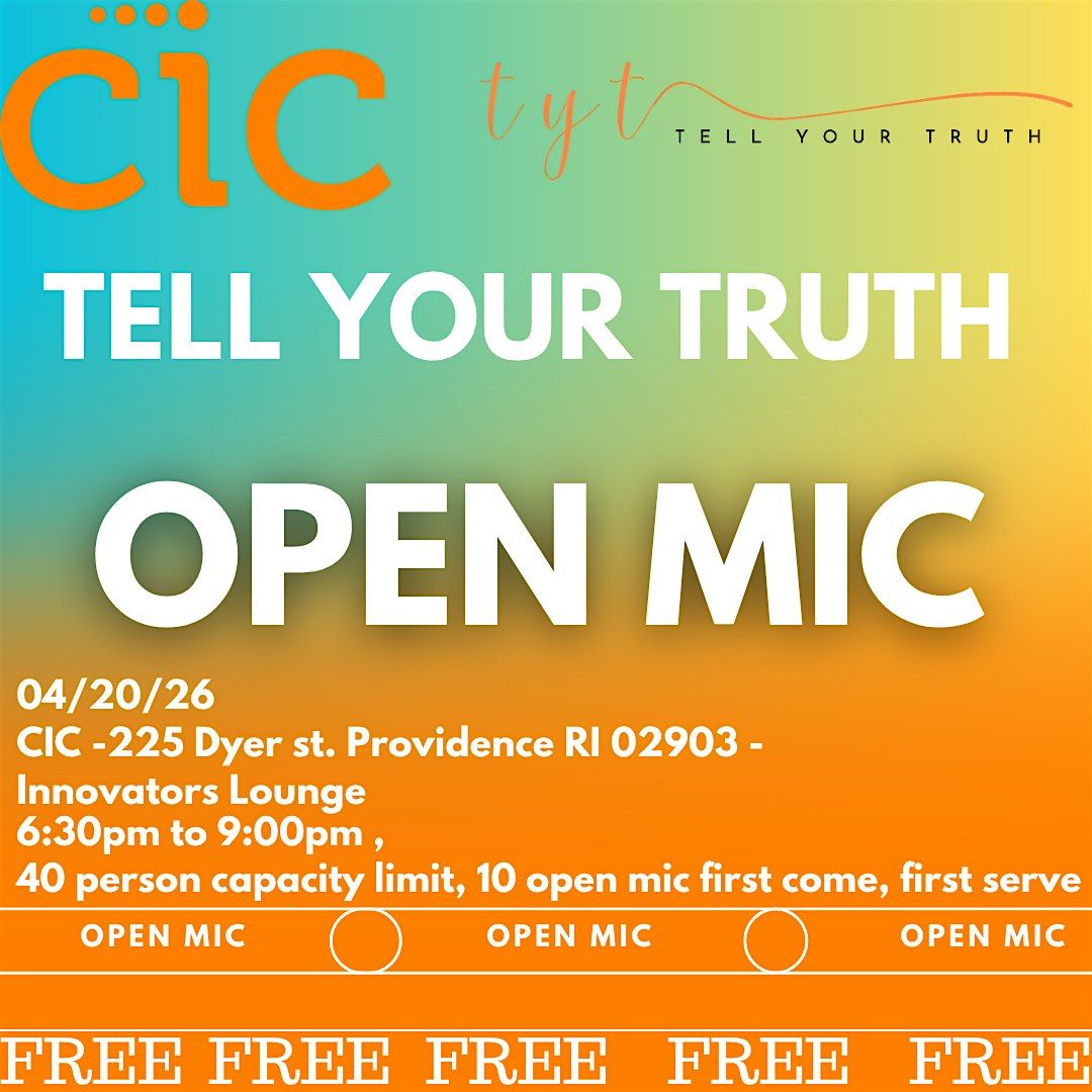Join us for a laid-back evening at CIC Providence (innovation center) first floor, where you can share your stories, poems, or songs at the Tell Your Truth Open Mic. Whether you're performing or just soaking it all in, it's all about honest vibes and good company.
