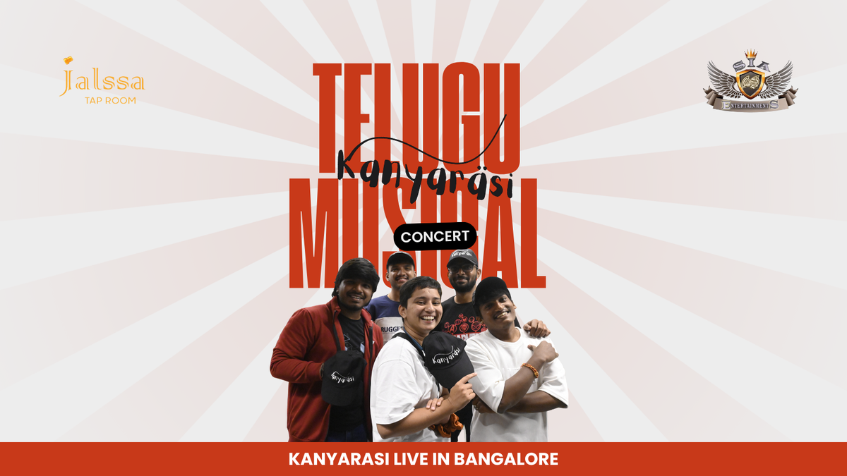 Kanyaraasi – Telugu Band Live in BangaloreBangalore, get ready for a power-packed Telugu live music night as Kanyaraasi Band takes the stage at Jalsaa Club! Known for their high-energy performances and crowd-favorite Telugu hits, Kanyaraasi promises an electrifying evening filled with music, vibes, and non-stop entertainment.From soulful melodies to foot-tapping mass numbers, this is a night for every Telugu music lover in the city. Gather your gang and experience live music the way it’s meant to be — loud, lively, and unforgettable.Live Telugu Band PerformanceHigh-energy vibes | Crowd favoritesPerfect weekend party night