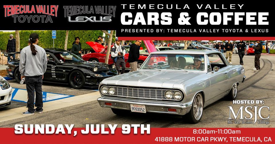 Join us July 9th for Temecula Valley Cars and Coffee Presented By: Temecula Valley Toyota and Temecula Valley Lexus! Bring what you drive we'd love to see you! MSJC Temecula Campus