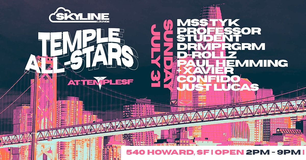 Join us at the brand new SKYLINE Lounge @ Temple Sunday! Enjoy breathtaking 360-degree views from our brand new rooftop perch in the heart of downtown. Stay tuned for an exciting lineup of events on the roof; you're not going to want to miss these intimate shows under the San Francisco skyline.