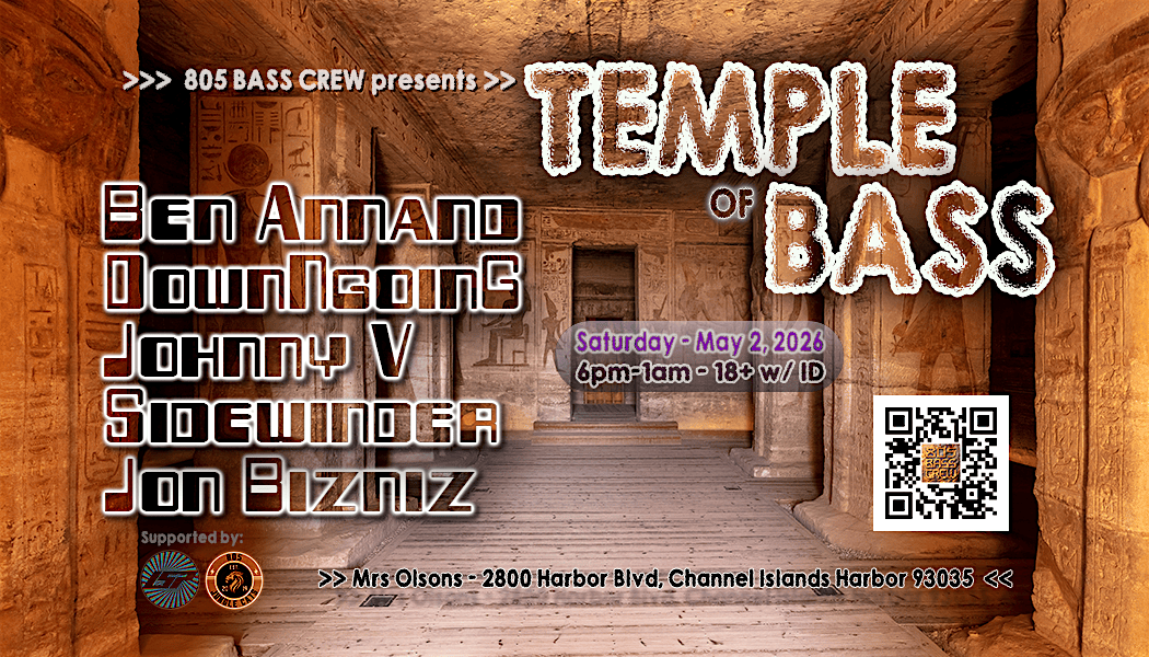 Our California dance music community lost a Legend. We're here to honor him by shredding the dancefloor. He's mixed our souls on the decks for over three decades. Join us as we share in memory, community and dance for our friend gone too soon. We are 805 BASS CREW and our parties are "Temple of Bass." We take pride in providing exceptional talent, sound and Vibes! We look forward to seeing you!