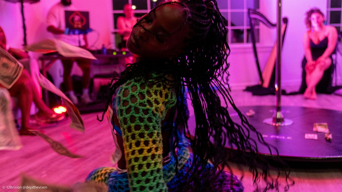 Info: Take a moment to refresh and indulge. Enjoy drinks, light bites, and mingle with fellow guests. Audience members are invited to step up, explore the pole, and play alongside our performers in a fun, playful, and flirty experience.