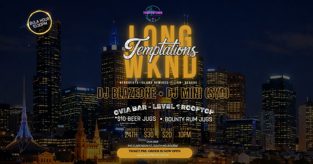 Join us at Temptations for our first event of the year. Taking over Ovia Bar’s Level 1 Rooftop, expect only the best Afrobeats, Island remixes, Fijian and Reggae vibes overlooking the Burn city views.