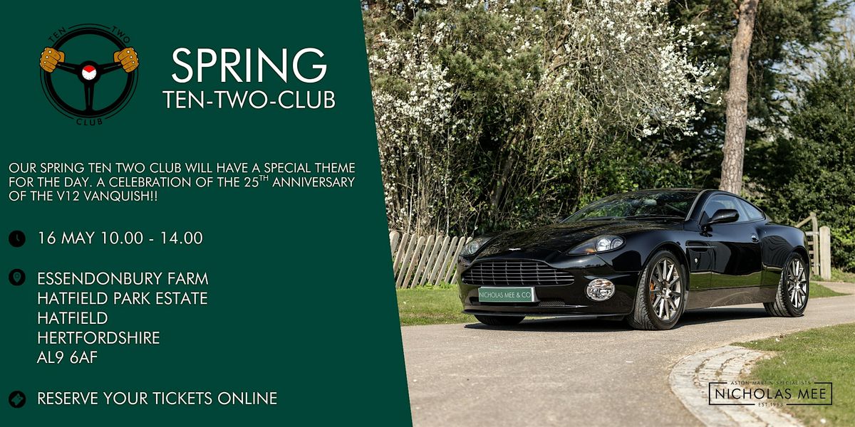 Our Spring Ten Two Club will have a special theme for the day. A celebration of the 25th anniversary of the original Aston Martin V12 Vanquish!