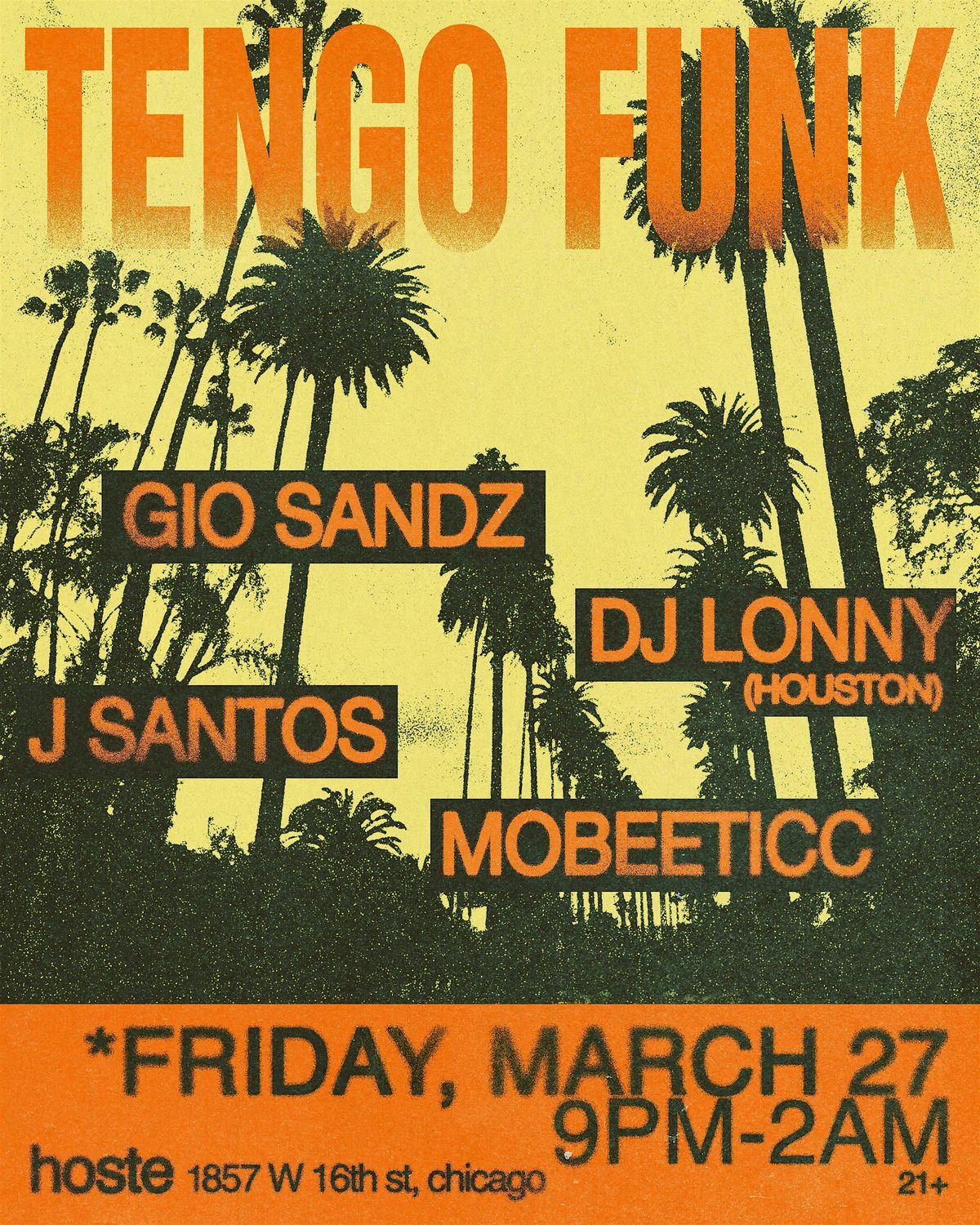 March 27 — Tengo Funk takes over Hoste. 🌴