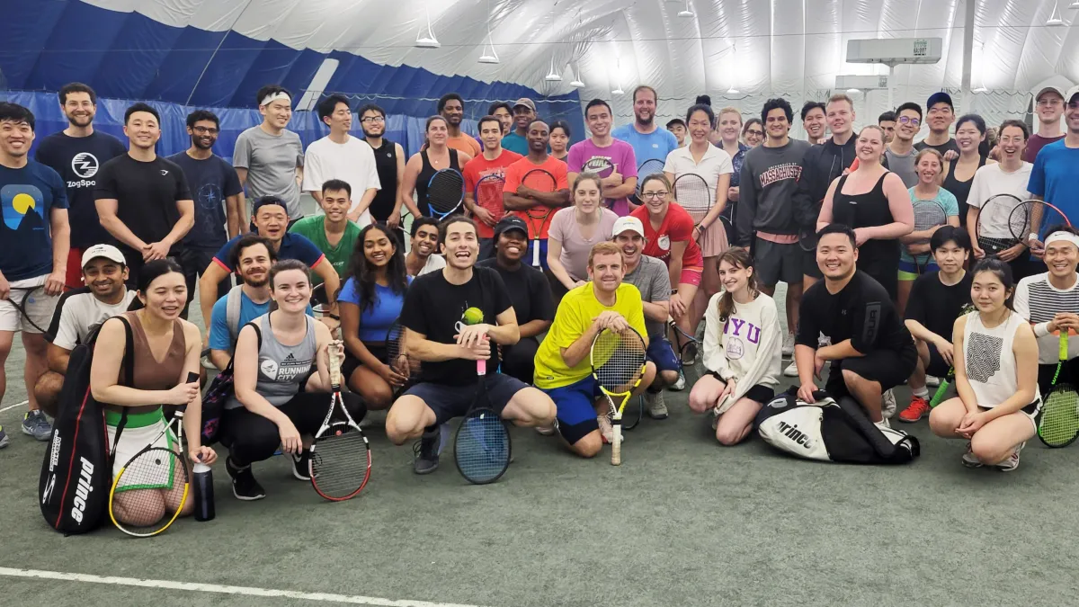 You are guaranteed 1.5 hours of tennis within a time period of 8-11pm.You will have two 40 minute DOUBLES games or a drill court for one session, and we finish with our famous SKYBALL group activity or free play. Wine, beer, and snacks are out all night. We buy first round at Granny Annie's afterwards at our after-party.