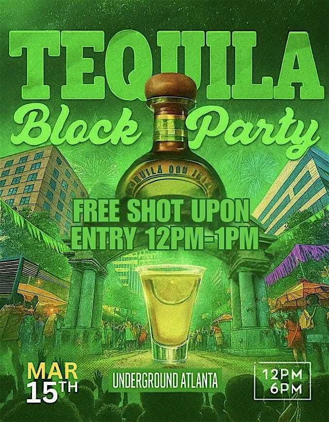 Get ready for one of the biggest day parties of the spring! We’re taking over Underground Atlanta for a full-scale Tequila Block Party celebrating St. Patrick’s Day Weekend with nonstop vibes, drinks flowing, and the city outside.