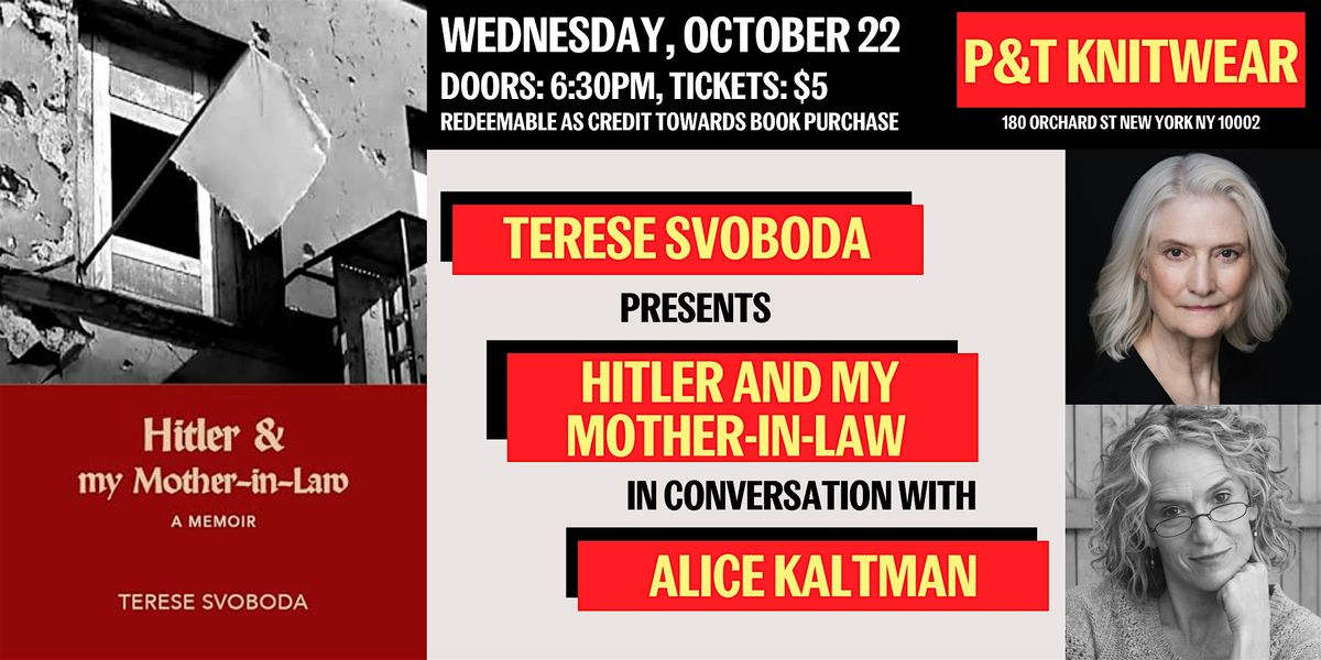 P&T Knitwear is pleased to welcome Terese Svoboda to celebrate and discuss her new book, Hitler and My Mother-in-Law: a riveting memoir that explores the intersection of truth—both familial and political—through the colorful and complex life of the author's mother-in-law.