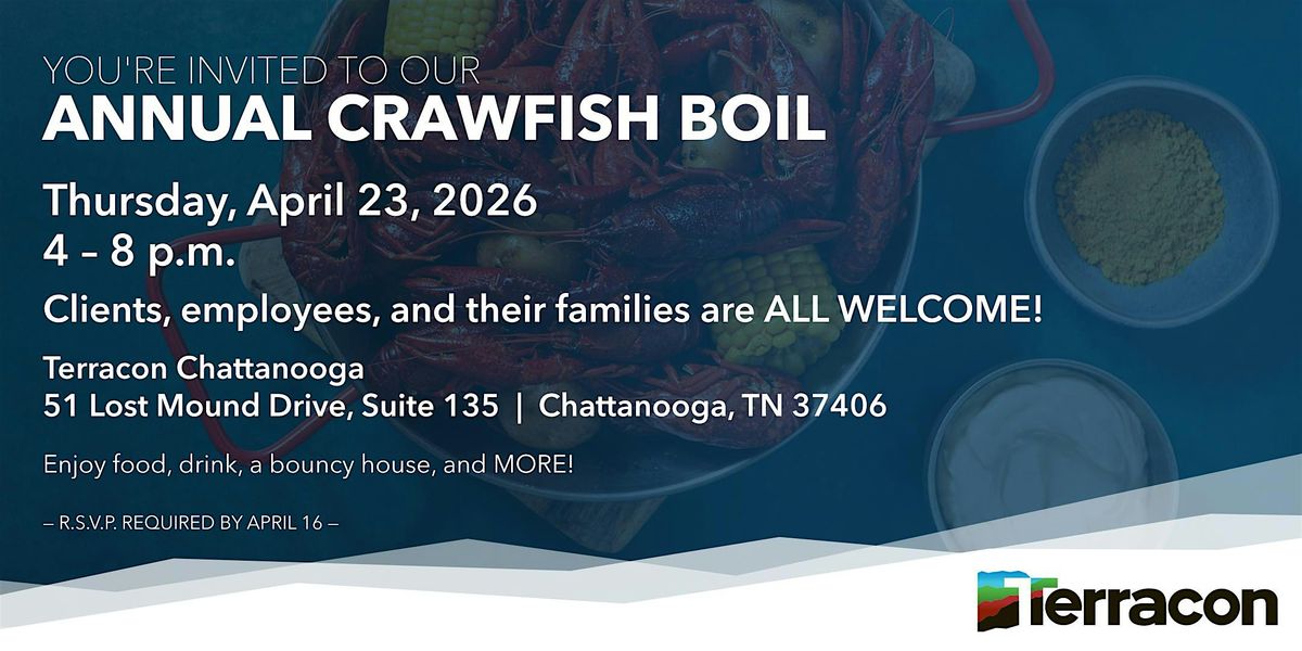 Get ready for some fun at the Terracon Chattanooga Annual Crawfish Boil! Join us for boiled crawfish, great company, and good vibes. It’s the perfect way to kick back, catch up with friends, and enjoy the Chattaooga Office tradition!