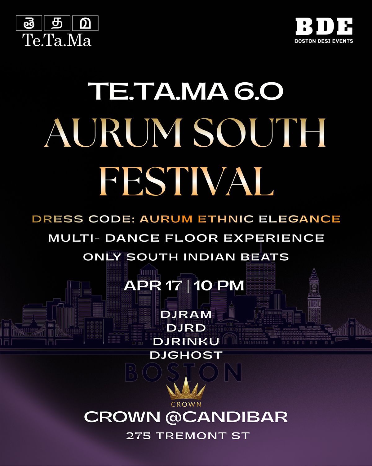 ๐๏ธ Friday, April 17th | 10 PM ๐ Crown @ Candibar | 275 Tremont St, Boston ๐ง Beats by: DJ Ram, DJ RD, DJ Rinku, & DJ Ghost