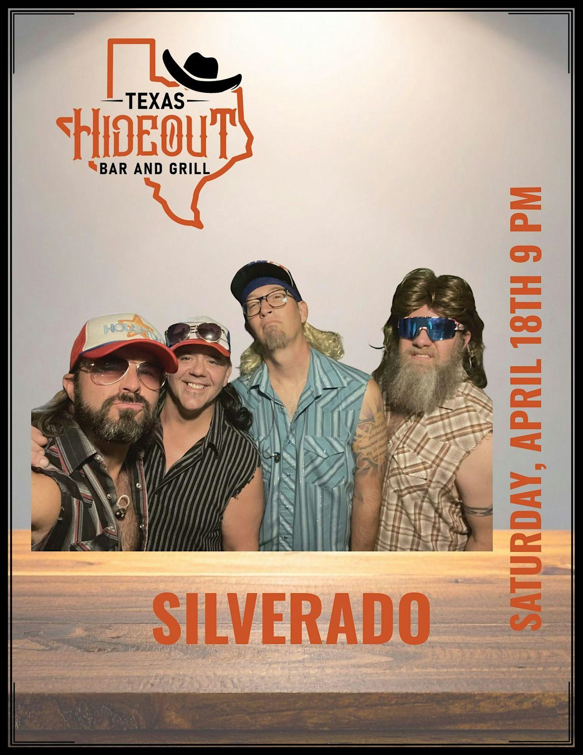 Get ready for an unforgettable night at Texas Hideout! We're bringing you Silverado live! — The best of Mullet Country with great vibes, live music, and good times. Whether you're a local or just passing through, come kick back with us and enjoy this killer performance. Don't miss the fun, grab your friends, and let's make it a night to remember!