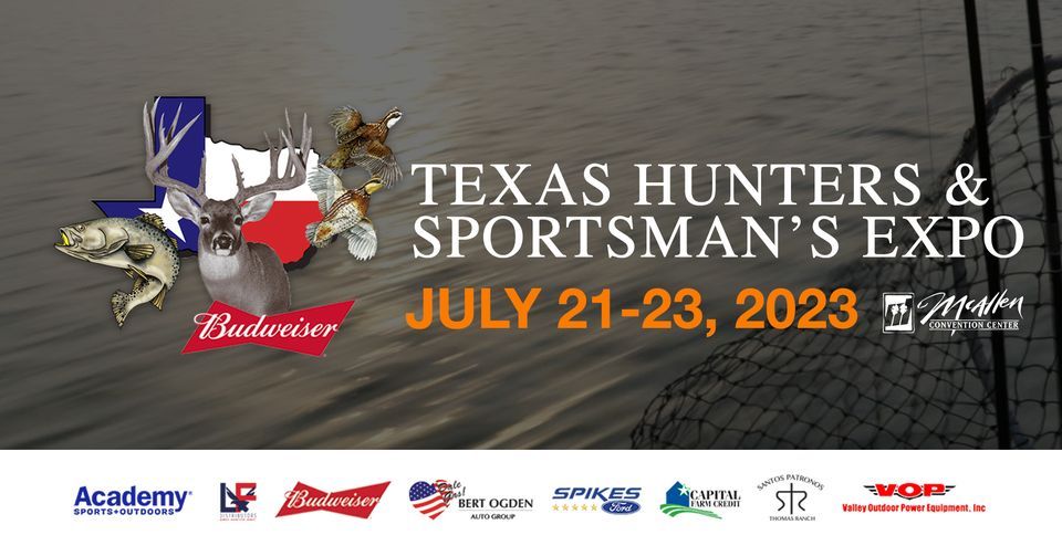The 32nd annual Texas Hunters & Sportsman's Expo returns July 21-23, 2023 to the McAllen Convention Center! Thank you to our sponsors - Kids 12 and under FREE courtesy of Academy Sports & Outdoors and L&F Distributors. JOIN US for the #1 rated outdoors, hunting and fishing expo in South Texas!