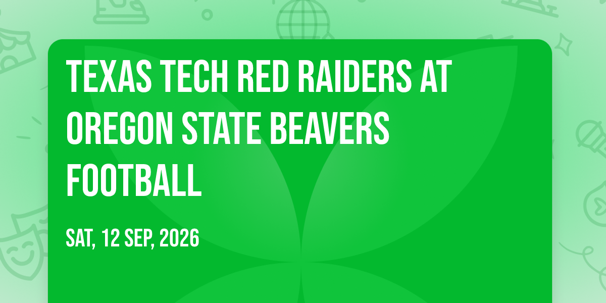 π Location: 44.5581, -123.279β¨ Discover the extraordinary at Texas Tech Red Raiders at Oregon State Beavers Football, where magic meets reality in ways you've never imagined! ποΈ Set in Reser Stadium nestled in bustling Corvallis, OR, this event promises to be a landmark occasion. π Taking place on September 12th, 2026 at 10:30 AM, it's going to create an atmosphere where every moment becomes a cherished memory. π Immerse yourself in an experience crafted with attention to every detail, designed to surprise and delight at every turn. They have worked tirelessly to ensure this event exceeds all expectations, bringing together elements of entertainment, innovation, and pure joy. π Don't miss your chance to be part of this remarkable journey!