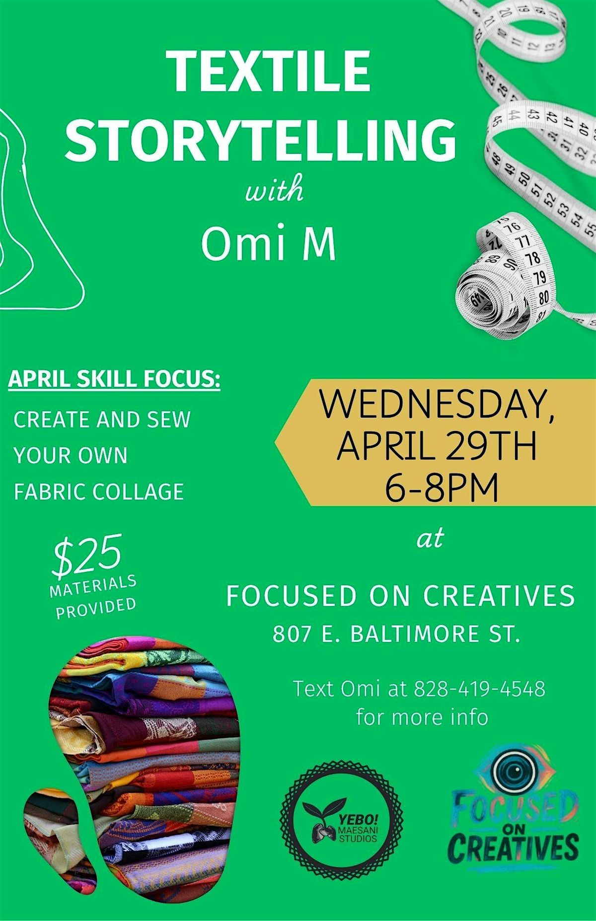 Join us for Textile Storytelling, an awesome in-person workshop where you'll dive into the art of narrating and archiving through fabric. Whether you're a creative soul or just curious, come experience how textiles can tell incredible stories through color, texture, and pattern. In this storytelling and recycled fabric art workshop, you'll learn beginner sewing techniques while creating your own fabric collage to take home! t's a laid-back vibe perfect for meeting fellow craft lovers and getting inspired. Feel free to bring scraps that add to your story, basic materials will be provided.