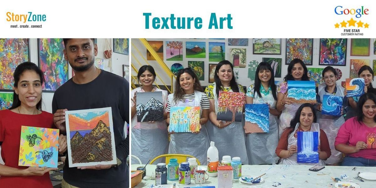 In texture art session we will be learning about basics of texture painting - we will create our own texture paint mix, understand application of the same, texturing methods and finally create a texture art on canvas board.
