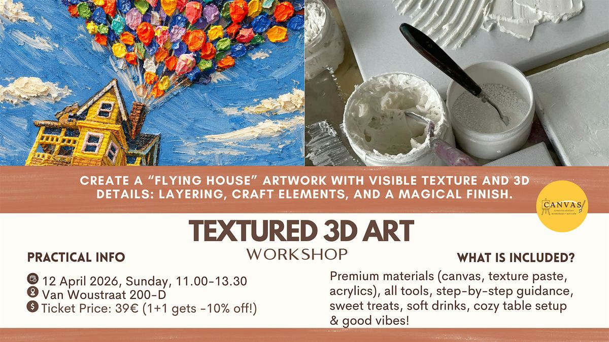 In this session we’ll make a “flying house” style piece using texture paste + acrylics, layering and building the artwork so it feels dimensional and rich : perfect if you love art that you can really feel. No experience needed: we guide you step-by-step.