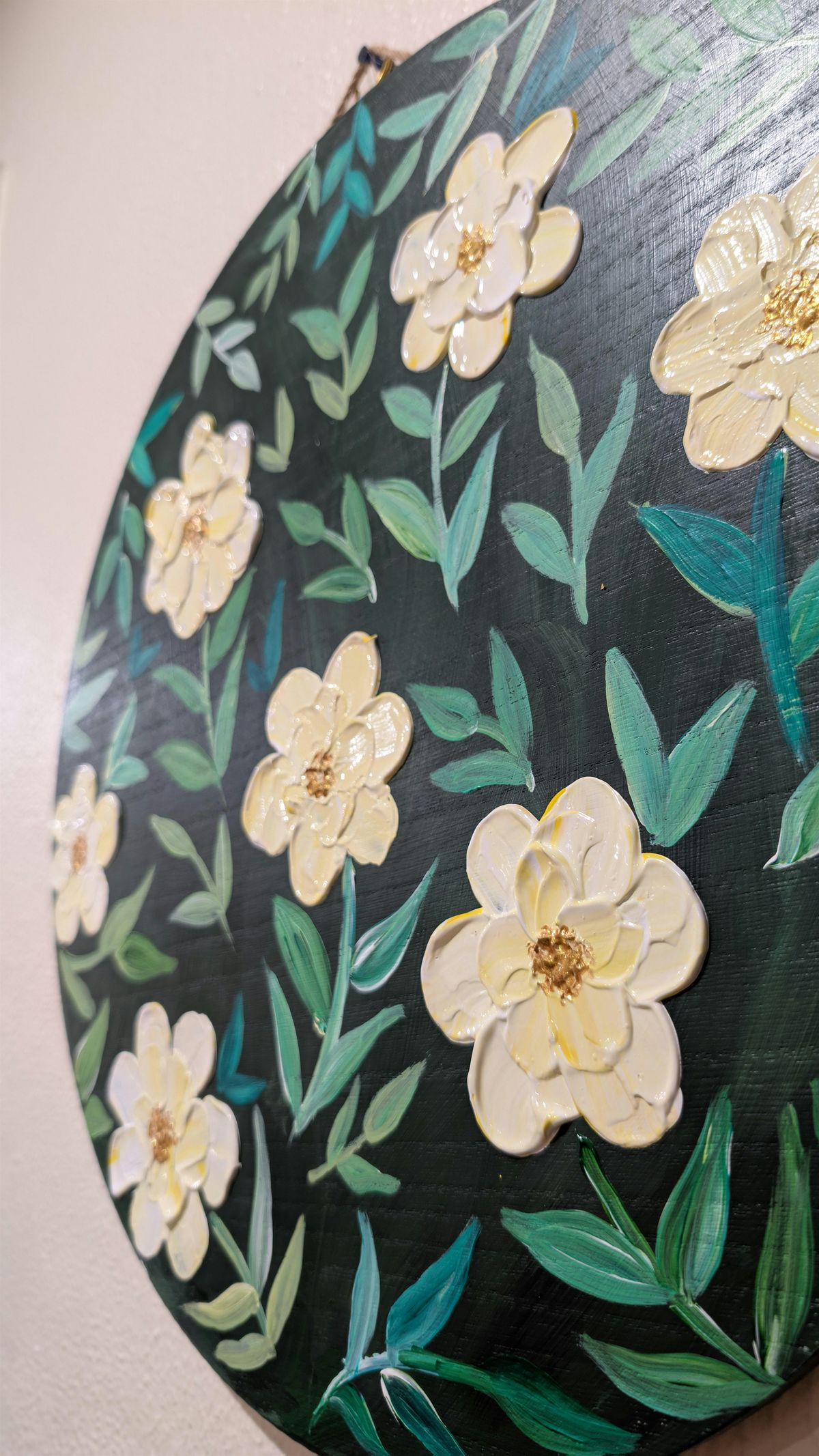 The workshop is beginner-friendly and requires no prior art experience. With guided instruction, participants will explore working with texture, modeling paste, palette knives, and acrylic paints to create a beautiful floral composition.