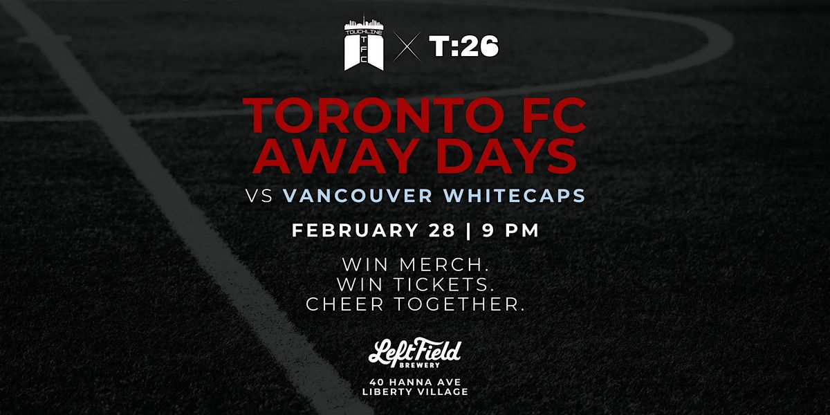 ⚽️🔴 On February 28 at 9 PM, Toronto26 x Touchline TFC bring the first of many TFC Away Days to Left Field Brewery, Liberty Village (40 Hanna Ave) for Toronto FC vs Vancouver Whitecaps.