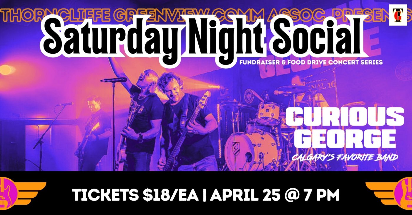 They’re coming back to bring the house down-AGAIN! Calgary’s favourite band, Curious George, have sold out every Saturday Night Social fundraising concert and food drive they’ve played since the beginning of this concert series and the April 25th show will likely be no exception, so get your tickets pronto. Enjoy snacks at our concession, great beverage options, and, of course, the rock and pop hits you know and love. Don’t forget your nonperishable food donation for the Calgary Food Bank too. Info/admission: https://www.tgcacalgary.com/curious-george-at-the-tgca-april-25/