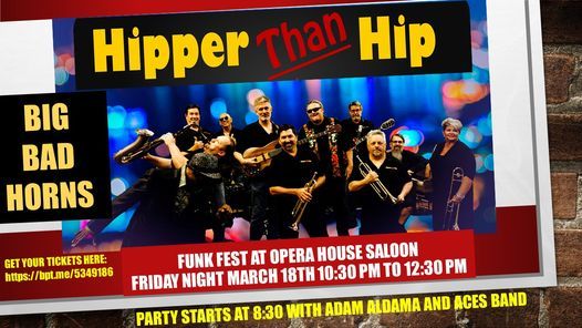 Hipper than Hip Band is announcing a new show headlining for the @Opera House Saloon in Roseville on March 18th, 2022 at 10:30PM. Party begins at 8:30 with the @Adam Aldama Aces Band. This is a ticketed event and we hope to see all of our peeps there. A funky Friday night of fun is promised! Tickets available online at https://bpt.me/5349186
