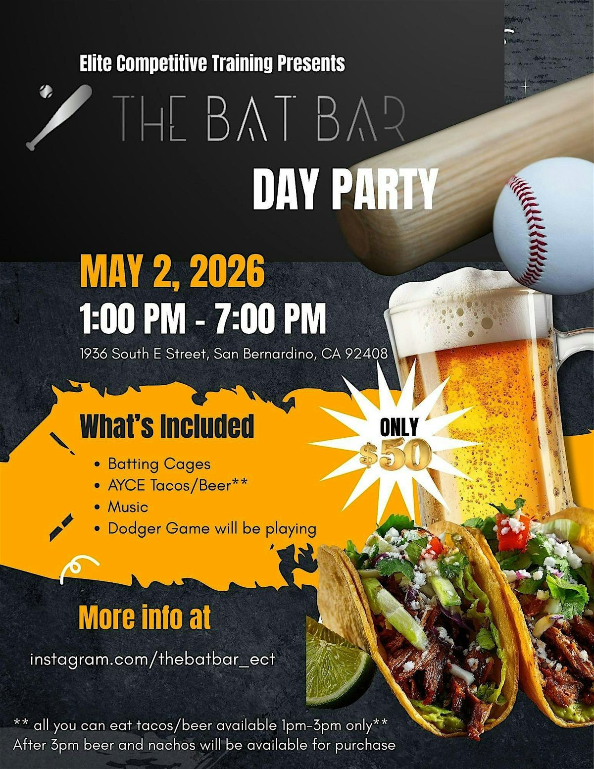 Ready for a fun day out? The Bat Bar: Batting & Brews brings together the best of baseball vibes and craft beers! Swing some bats, enjoy cold brews, tacos and vibe with fellow Dodger fans in person. Whether you're a pro or just here for the good times, this event's got something for everyone. Come thirsty, come eager, and let's make some memorable moments!