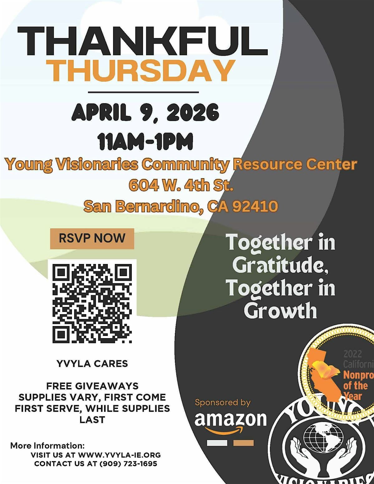 #ThankfulThursday #YVYLACares #CommunityFirst #SanBernardino #GiveBack #FreeResources