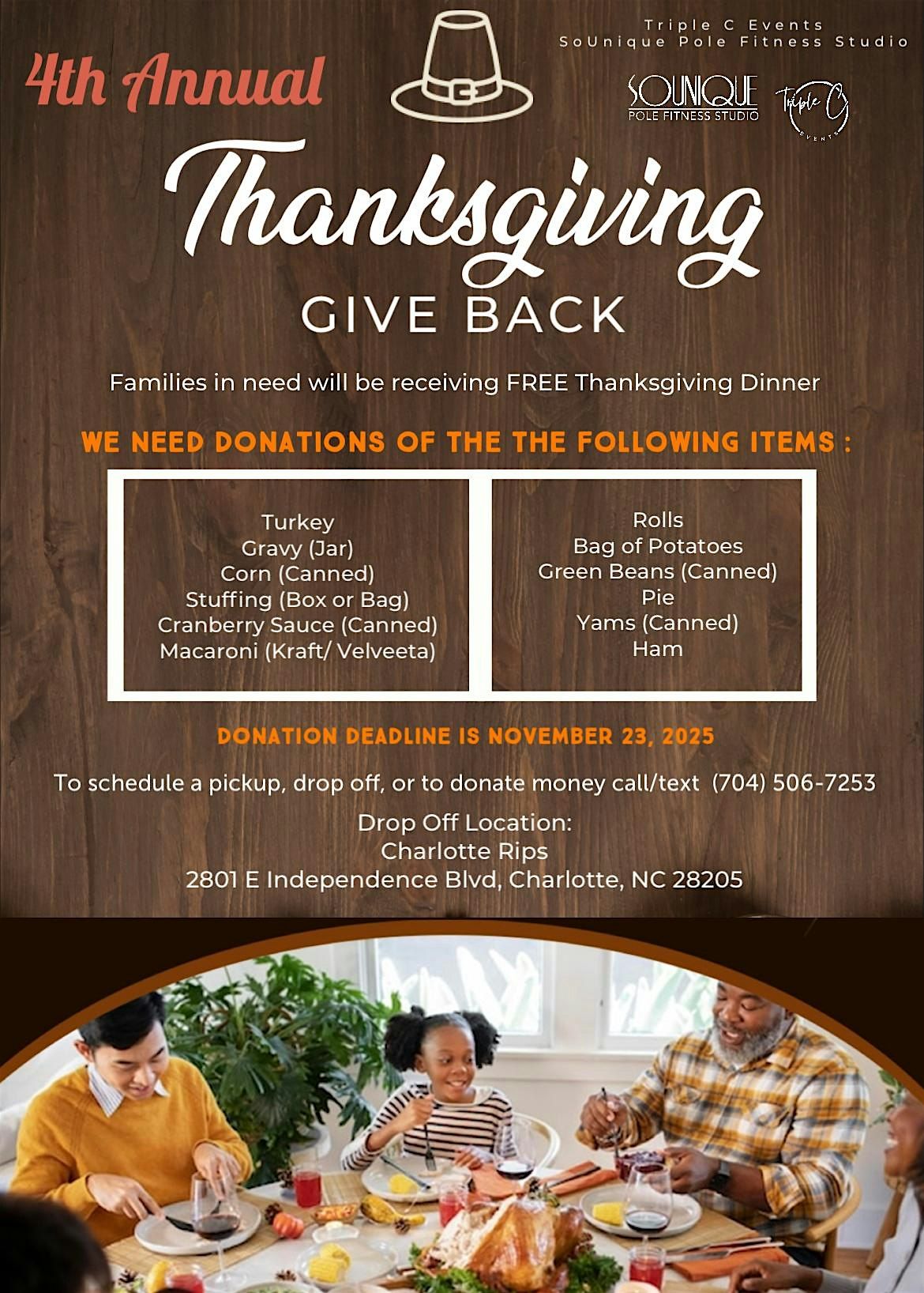 We are giving back to the community. We are feeding families in need for Thanksgiving. Let's come together and make a difference!