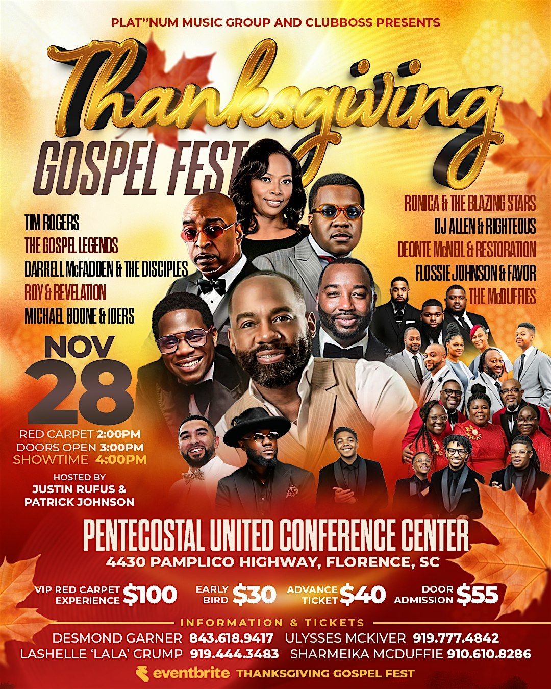 Come celebrate Thanksgiving weekend at this spirit led event. This will be a concert for the ages!