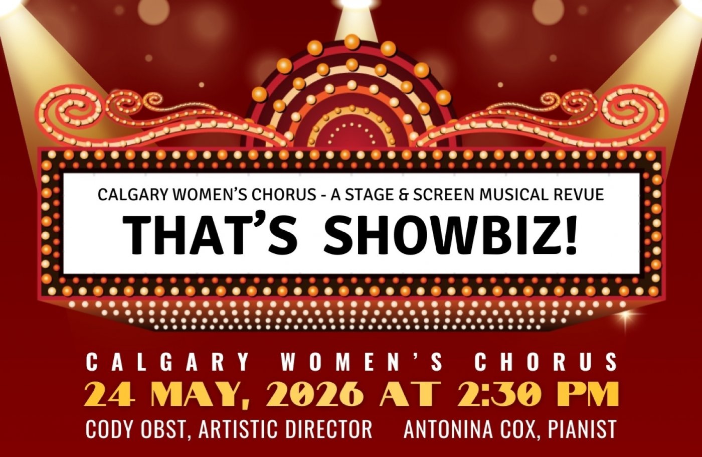 Step into the world of Broadway and come celebrate the Calgary Women’s Chorus 15th Anniversary. This musical extravaganza will feature music from 101 Dalmatians, A Little Night Music, Cole Porter, Funny Girl, Gabriel’s Oboe, Oliver!, Madame Butterfly, Wicked and more accompanied by a show band. Stay after the concert for a reception to cheer to our 15th season of singing together!