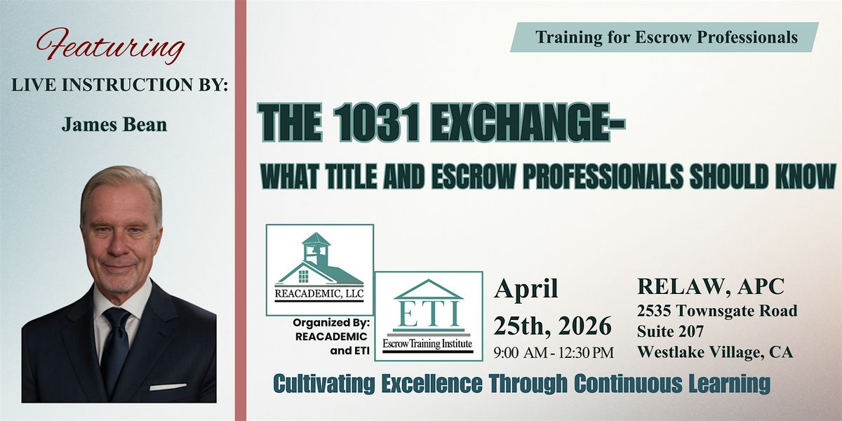 This hands-on course demystifies the 1031 Exchange for professionals in the title and escrow community. While the 1031 Exchange is a tax-driven transaction, the success or failure of the exchange often hinges on accurate handling of escrow instructions, communication with the Qualified Intermediary (QI), and the timing of funds release.