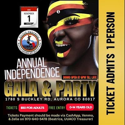 The United Ugandans Association of Colorado (UUACO) proudly presents the 2025 Annual Uganda Independence Gala & Party, a celebration of Uganda’s vibrant heritage, culture, and unity. This signature event brings together Ugandans, friends, and well-wishers from across Colorado and beyond to commemorate Uganda’s Independence Day in an atmosphere filled with music, dance, cuisine, and cultural pride.