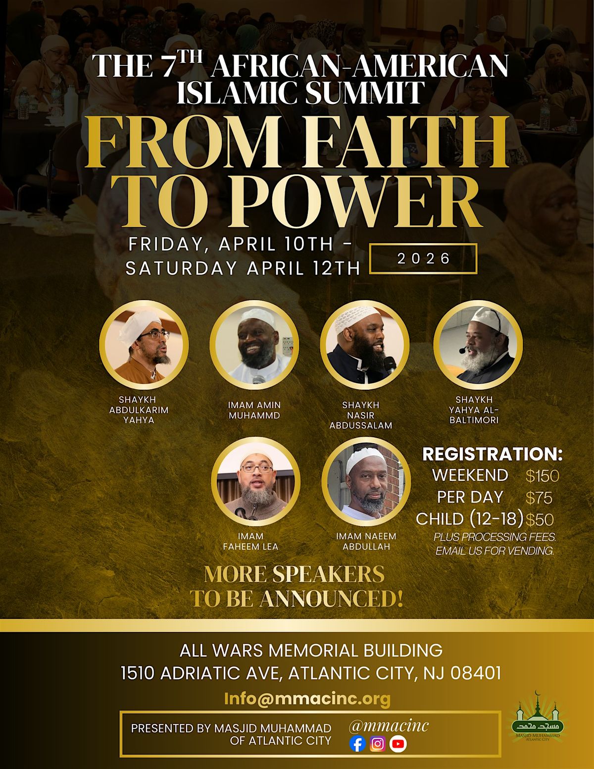 We have an exciting lineup of speakers and workshop facilitators including Imam Amin Muhammad, Shaykh AbdulKarim Yahya, Shaykh Nasir Abdussalam, Imam Naeem Abdullah, Imam Faheem Lea and more to be announced!
