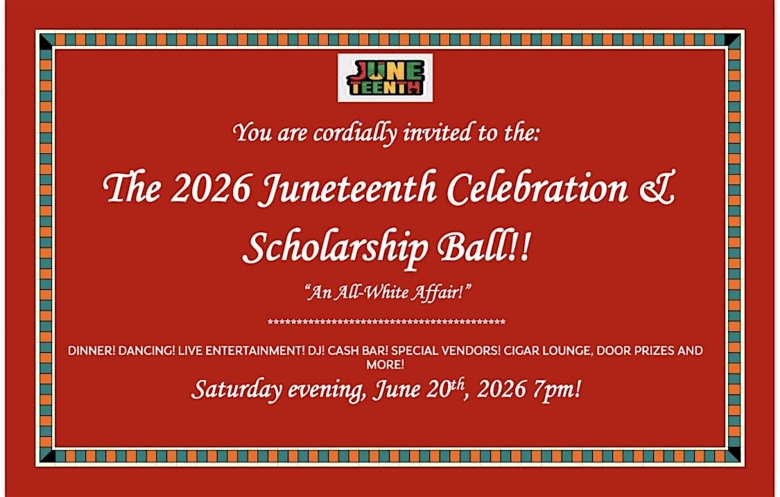 Get ready to celebrate freedom and unity at the coolest in-person event of the year! Dust off your freshest all white outfits and join us for a night full of good vibes, great music, and unforgettable memories. This is the perfect chance to connect, dance, and honor Juneteenth in style. Don’t miss out on the party everyone's gonna be talking about! "PRE-REGISTER" HERE FOR FREE. COSTS ARE AS FOLLOWS: $55 per person (Pre-Earlybird before March 31st) $65.00 per person (Early bird, Aril 1st - April 30th) $75.00 per person (Regular, May 1st until June 19th). Tables for eight available at $525.00 flat rate. PRE-REGISTER AND WE WILL CONTACT YOU WITH PAYMENT OPTIONS!! DINNER! DANCING! LIVE ENTERTAINMENT! DJ! CASH BAR! SPECIAL VENDORS! CIGAR LOUNGE, DOOR PRIZES AND MORE! Attire: White and Tight! Grown and Classy! Sexy and Sassy!