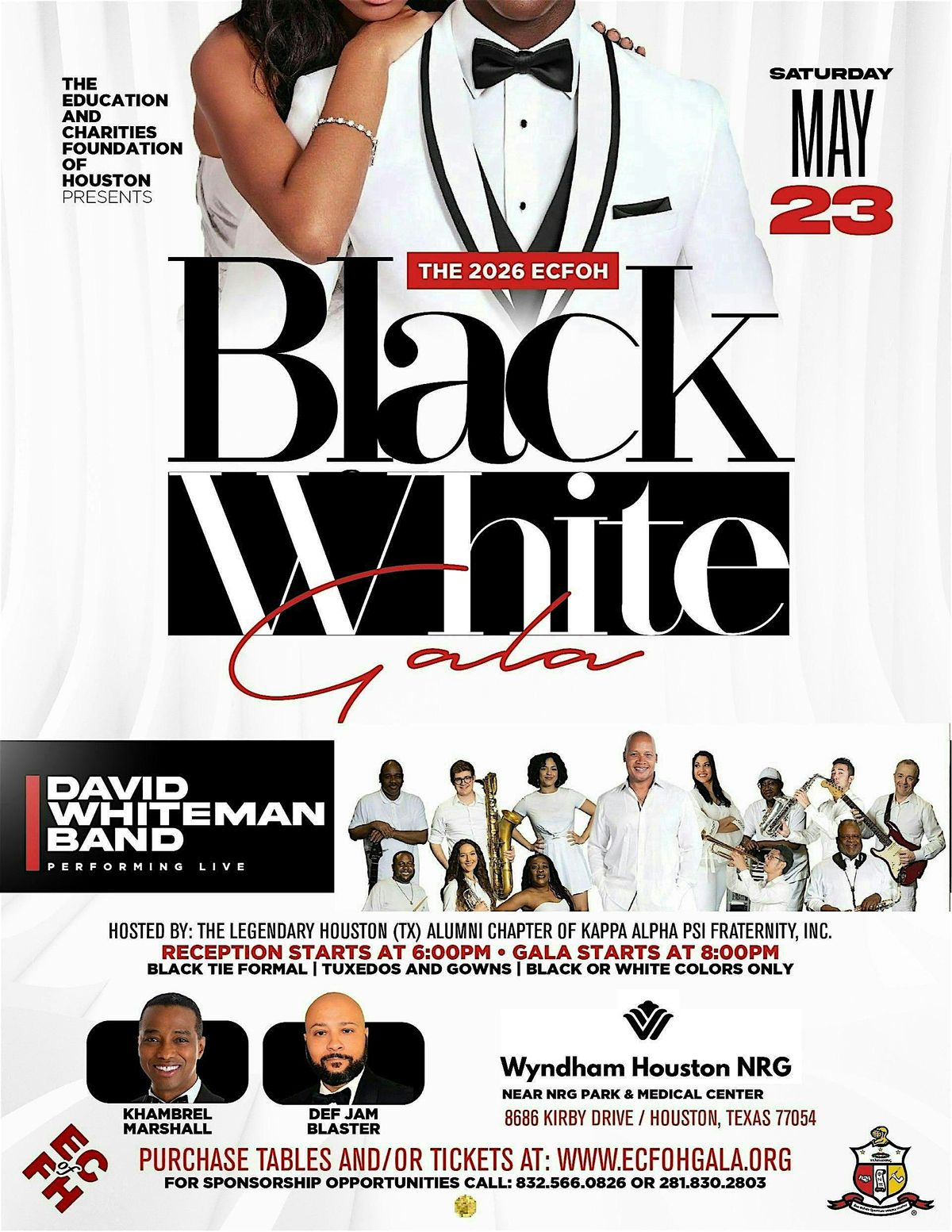 Get ready for an unforgettable night of sophistication, celebration, and impact as The Education and Charities Foundation of Houston presents the 2026 ECFOH Black & White Gala - the most anticipated black-tie event of the year. On Saturday, May 23rd, step into a world of upscale glamour, live entertainment, and purpose-driven giving as the David Whiteman Band ignites the room and special guests Khambrel Marshall and Def Jam Blaster set the tone. This is your invitation to experience a night where elegance meets excellence - tuxedos, gowns, black & white only, and a room full of Houston’s finest. Join us at the Wyndham Houston NRG for an electric evening you’ll talk about long after the last song plays.