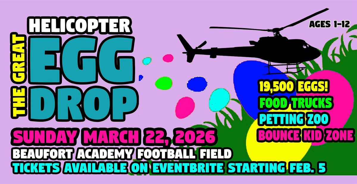 On Sunday, March 22, 2026, we invite the ENTIRE community to join us for the sixth annual Great Helicopter Easter Egg Drop on the Beaufort Academy Football Field.