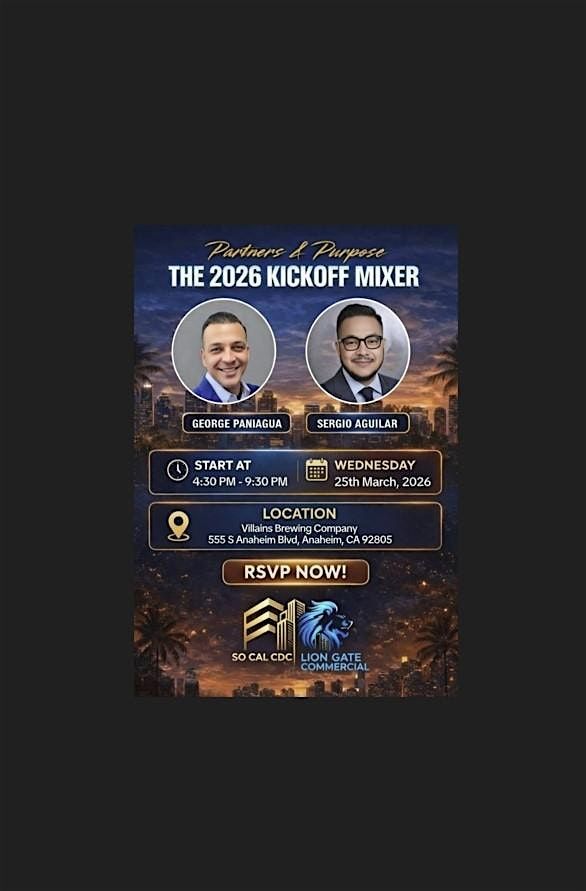 Get ready to mix it up and kick off 2026 in style! This in-person event is all about good vibes, great company, and fresh starts. If you’re looking to network, make new connections, and just have a blast, this mixer’s got you covered. Don’t miss out on your chance to learn about the fresh new business team & strategy between Lion Gate Commercial and SoCal CDC. Come for the business and stay for the fun. Make 2026 one to remember!