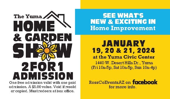 Enjoy all the endless possibilities at Yuma's largest and most anticipated Home Show...this year will showcase products and services in the home and garden industries.Talk to licensed contractors, shop products never seen before at show discounts, win cash and prizes, see crafters, Master Gardeners and Garden Club seminars.