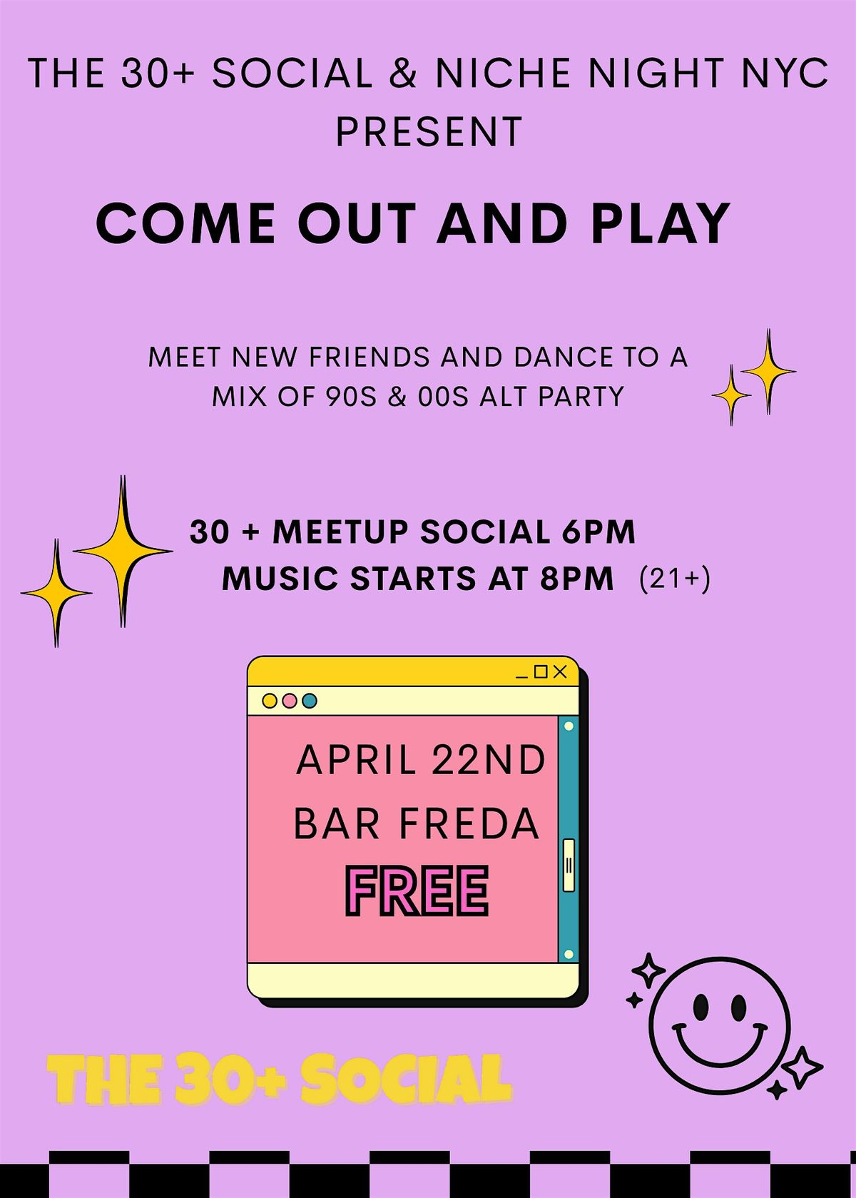 30+ meetup social & a mix of 90s & 00s alt music <3 come out and meet new friends & dance!