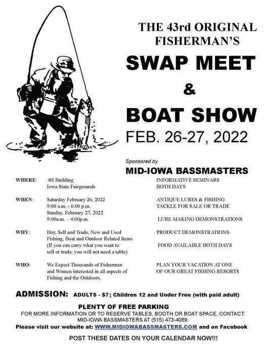 Sponsored by: MID-IOWA BASSMASTERSWHERE: Varied Industries Building, Iowa State Fairgrounds