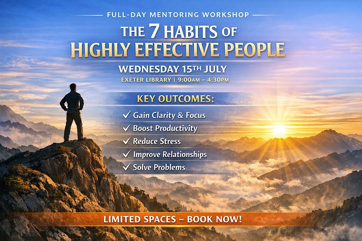 We invite you to join us at Exeter Library for a full-day mentoring workshop to dive into the world of effectiveness and personal growth using the world's most influential and enduring framework for personal and professional effectiveness.