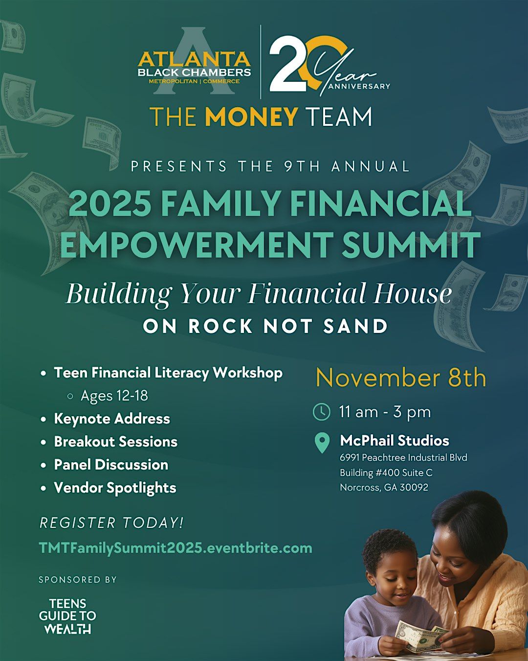 The Money Team presents the 7th Annual Family Financial Empowerment Summit. We are so grateful to have our 7th annual event at ABC Member owned McPhail Studios in Norcross. This event focuses on personal financial education for families. Financial literacy is one of the most critical components of the ABC's mission.