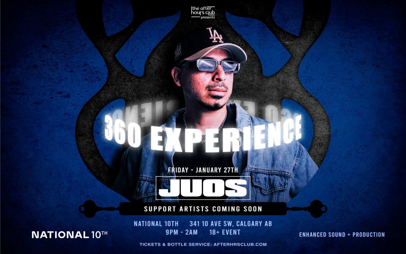 Celebrate the After Hours Club 1-Year Anniversary with the city’s music community as we mark the moment in a big way! 🔥 💙🗝️ For the first time ever, JUOS touches down in Calgary as we transform National 10th into a full 360° experience, featuring enhanced lighting and sound designed to hit from every angle.