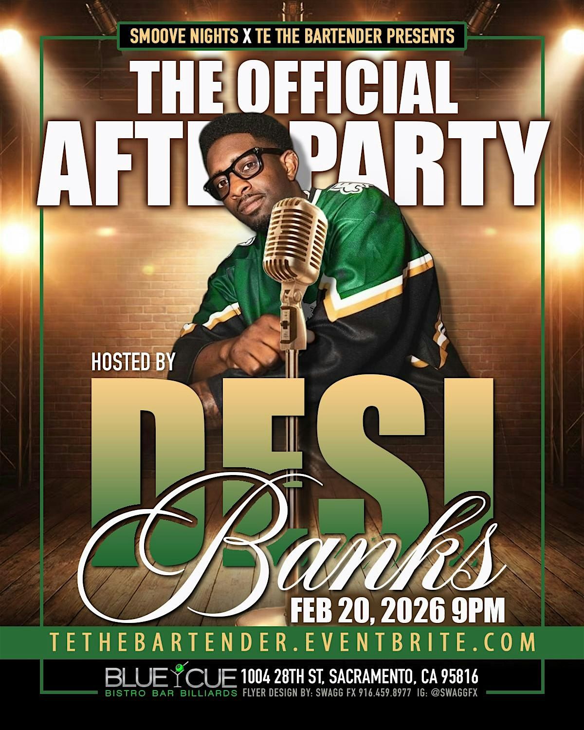 Sacramento's OFFICIAL AFTERPARTY for the Desi Banks Comedy Show. Hosted by the legendary Desi Banks himself!