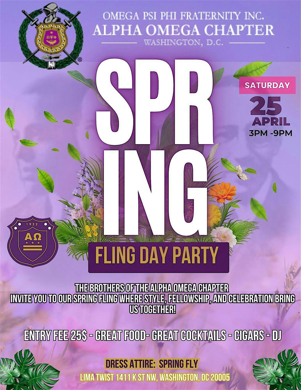 Get ready to soak up the DC sun and good vibes at The ALPHA OMEGA Chapter Spring Fling Day Party! Join us in person for an epic day filled with fun, friends, and fresh beats. It’s the perfect way to celebrate spring and make some unforgettable memories. Don’t miss out on this awesome day party—see you there!