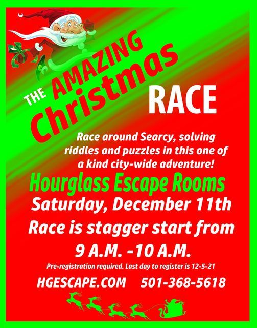 Booking is now open for the Amazing Christmas Race! Book now with promo code: JOLLY and save $20 if you book by 11-30-21. https://bookeo.com/hgescape?type=41575UNTMXT17D3FB92B5D